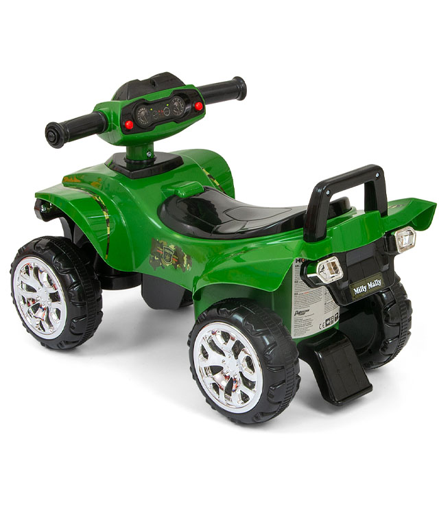 Το Ποδοκίνητο όχημα Milly Mally Monster Quad είναι η τέλεια βόλτα για όλα τα αγόρια και τα κορίτσια που αγαπούν να παίζουν σε εξωτερικούς χώρους. Το όχημα θα αποδειχθεί χρήσιμο τόσο σε εσωτερικούς όσο και σε εξωτερικούς χώρους. Ένα άνετο κάθισμα θα εξασφαλίσει άνεση κατά την οδήγηση. Οι μεγάλοι τροχοί με πέλμα εξασφαλίζουν επαρκή πρόσφυση σε οποιαδήποτε επιφάνεια.