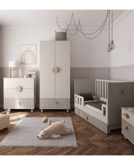 Δημιουργήστε έναν κομψό και πρακτικό χώρο για το μωρό σας με αυτό το σετ επίπλων στην πιο μοντέρνα απόχρωση κασμίρ (σαμπάνια). Η συλλογή συνδυάζει την κομψότητα με έξυπνες λύσεις που εξελίσσονται μαζί με το παιδί σας: