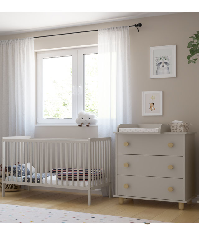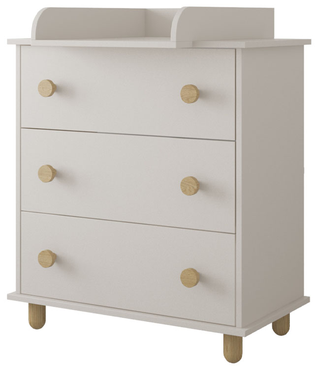 Όμορφο και πρακτικό έπιπλο για το βρεφικό δωμάτιο. Όταν το μωρό μεγαλώσει, μπορείτε εύκολα να αφαιρέσετε την αλλαξιέρα και να χρησιμοποιήσετε το έπιπλο ως κανονική συρταριέρα. Τα τρία ευρύχωρα συρτάρια είναι τέλεια για να αποθηκεύετε τα υπάρχοντα και την προίκα του μωρού όπως ρούχα, παιχνίδια, λευκά είδη. Το χρώμα του επίπλου, γνωστό ως κασμίρ ή σαμπάνια, είναι μία από τις πιο μοντέρνες αποχρώσεις σήμερα. Συνδυάζει το απαλό μπεζ με μια πινελιά γκρι, με αποτέλεσμα να ταιριάζει υπέροχα με μια ευρεία γκάμα χρωμάτων – από το λευκό μέχρι τις καφέ αποχρώσεις.