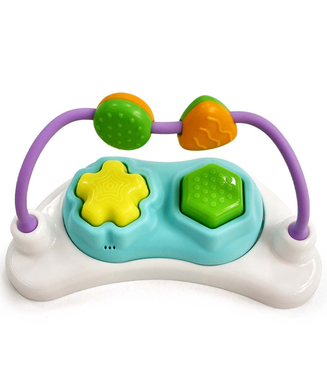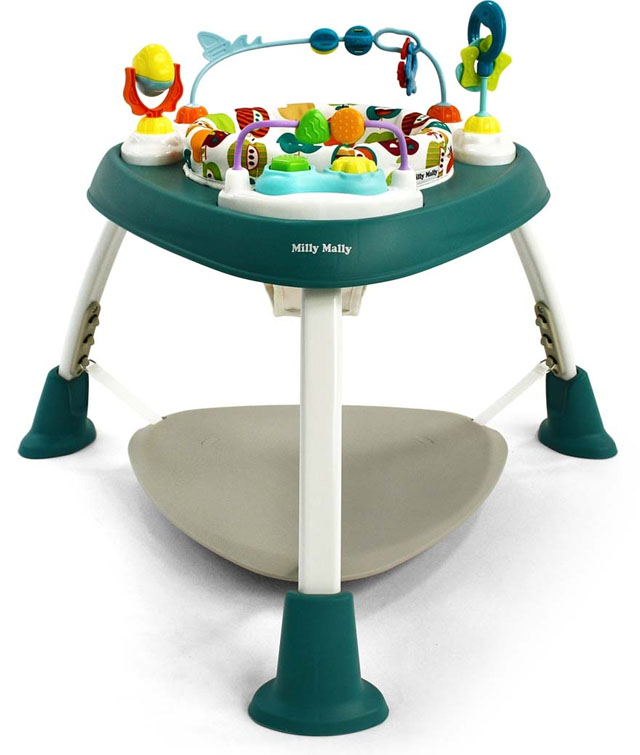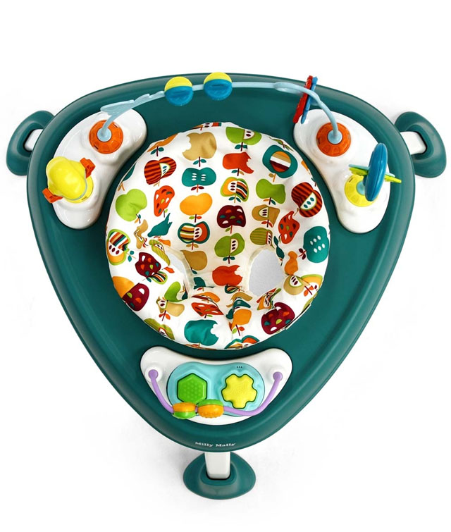 Το μαλακό, εργονομικό κάθισμα περιστρέφεται 360°, επιτρέποντας στο παιδί να φτάνει εύκολα όλα τα παιχνίδια γύρω του. Τα ενσωματωμένα παιχνίδια – κουδουνίστρες, περιστρεφόμενα στοιχεία, μασητικά και ελαστικά εξαρτήματα – ενισχύουν την αισθητηριακή ανάπτυξη, τη λεπτή κινητικότητα και τον συντονισμό χεριού-ματιού.