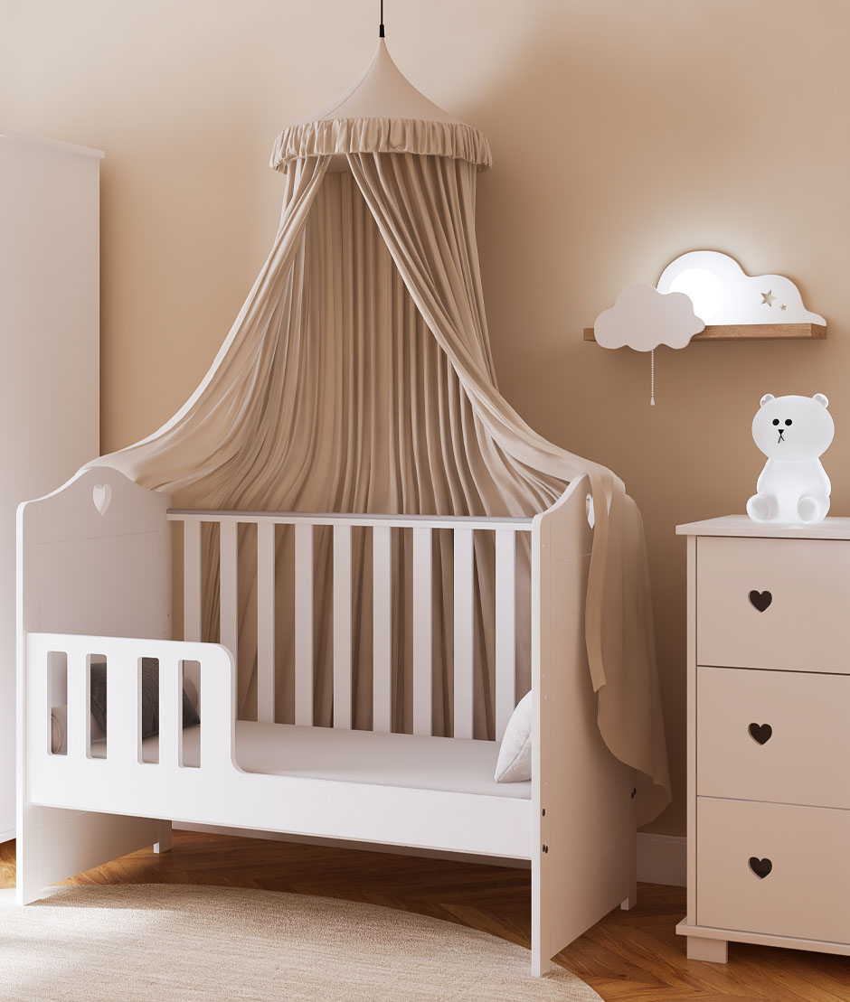 • ΠΡΟΣΤΑΤΕΥΤΙΚΗ ΜΠΑΡΑ ΑΣΦΑΛΕΙΑΣ (ΔΕΝ ΠΕΡΙΛΑΜΒΑΝΕΤΑΙ ΣΤΗΝ ΤΙΜΗ ΚΑΙ ΠΩΛΕΙΤΑΙ ΧΩΡΙΣΤΑ) – Χάρη σε αυτή μπορείτε να μετατρέψετε την κούνια σε κρεβάτι. Η μπάρα ασφαλείας χρησιμοποιείται όταν το παιδί μπορεί να σκαρφαλώσει μόνο του στο κρεβάτι.