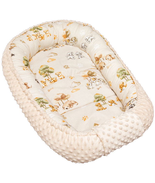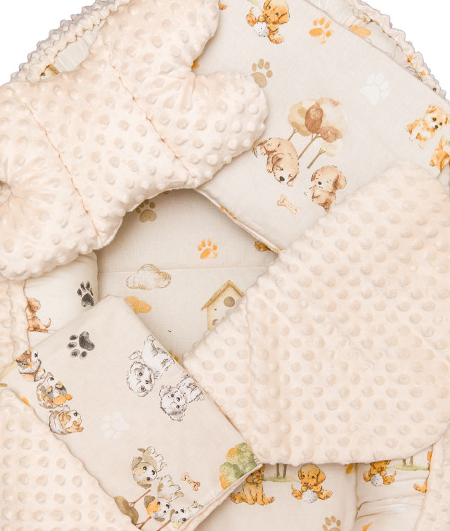 Βρεφική Φωλιά ύπνου διπλής όψης Κουταβάκια Minky + αξεσουάρ, 5 τεμ.