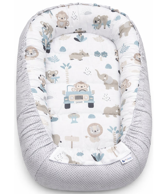 ‘Ανετη φωλιά ύπνου αφιερωμένη για μωρά από την γέννηση έως τους 9 πρώτους μήνες. Δίνει άνεση και ασφάλεια στο μωρό περιορίζοντας παράλληλα τον χώρο γύρω του.  Μπορεί να χρησιμοποιηθεί με διάφορους τρόπους : στο κρεβάτι των γονιών την αποφυγή να κυλήσει κάτω από το κρεβάτι; στον καναπέ ή στο πάτωμα έτσι ώστε το μωρό να είναι κοντά σας συνεχώς ; στα ταξίδια, είναι εύκολο να μεταφερθεί ως παρκοκρέβατο.