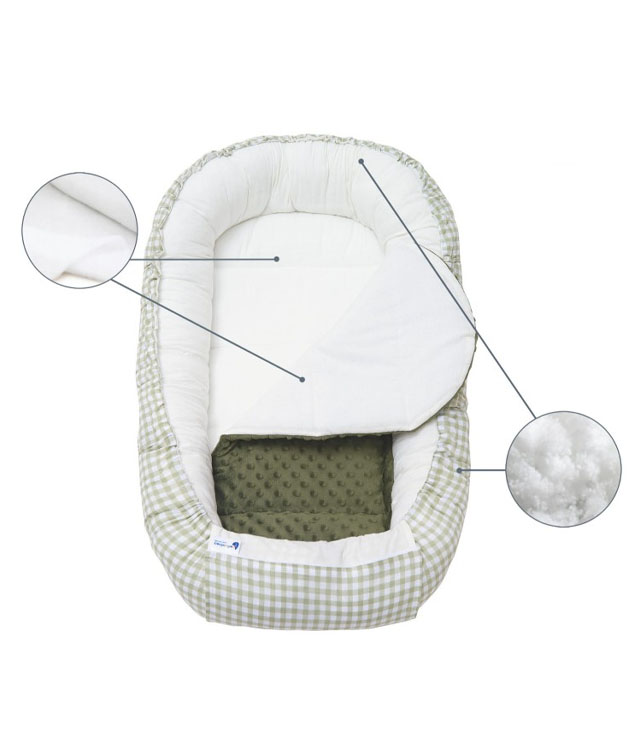 ‘Ανετη φωλιά ύπνου αφιερωμένη για μωρά από την γέννηση έως τους 9 πρώτους μήνες. Δίνει άνεση και ασφάλεια στο μωρό περιορίζοντας παράλληλα τον χώρο γύρω του. Μπορεί να χρησιμοποιηθεί με διάφορους τρόπους : στο κρεβάτι των γονιών για να αποφεύγεται το μωρό να κυλήσει κάτω από το κρεβάτι; στον καναπέ ή στο πάτωμα έτσι ώστε το μωρό να είναι κοντά σας συνεχώς ; στα ταξίδια, είναι εύκολο να μεταφερθεί ως παρκοκρέβατο.