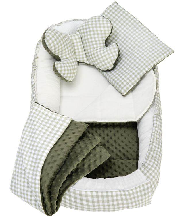 Βρεφική φωλιά ύπνου διπλής όψης Καρό + αξεσουάρ, 5 τεμ.