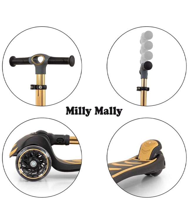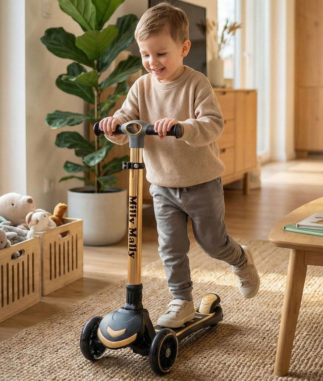 Παιδικό πατίνι 3 τροχών Boogie της Milly Mally με φωτιζόμενες ρόδες LED, ιδανικό για παιδιά από 3 ετών. Διαθέτει σύστημα οδήγησης με ισορροπία σώματος, ρυθμιζόμενο τιμόνι 4 θέσεων, αντιολισθητική βάση και πίσω φρένο για ασφαλή χρήση. Η ελαφριά αλλά ανθεκτική κατασκευή από αλουμίνιο εξασφαλίζει σταθερότητα και άνεση, ενώ το αναδιπλούμενο τιμόνι διευκολύνει τη μεταφορά.