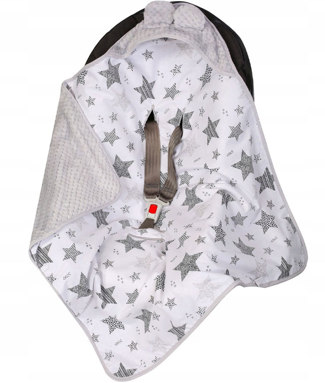 Απαλή και πρακτική κουβερτούλα δύο στρωμάτων, ιδανική για το καθισματάκι αυτοκινήτου ή το καρότσι του μωρού σας. Κατασκευασμένη από δύο στρώσεις υφάσματος – εσωτερικό 100% βαμβάκι, απαλό και ασφαλές για το ευαίσθητο δέρμα του μωρού από τη γέννηση, και εξωτερικό στρώμα που προστατεύει από το κρύο και κρατά το μωρό άνετο σε κάθε βόλτα. Η χαριτωμένη κουκούλα με αυτάκια προστατεύει τα ευαίσθητα αυτάκια του μωρού από τον άνεμο, ενώ τα ειδικά ανοίγματα για τις ζώνες ασφαλείας εξασφαλίζουν ότι η κουβερτούλα δεν θα γλιστρήσει κατά τη διάρκεια του ταξιδιού.