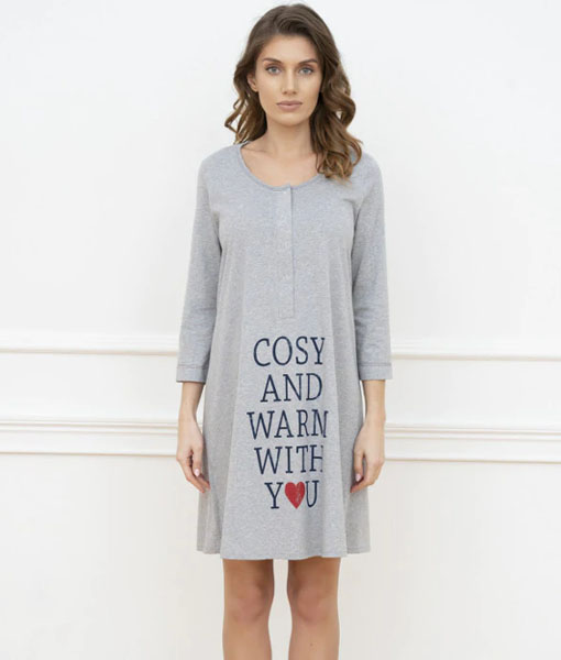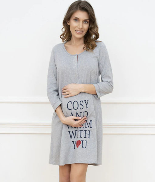 Όλα μας τα νυχτικά εγκυμοσύνης – θηλασμού είναι σχεδιασμένα για μέλλουσες μητέρες, έχουνε άνετη γραμμή και επιπλέον χώρο για την κοιλίτσα που μεγαλώνει καθώς και για το στήθος. Για αυτόν τον λόγο θα πρέπει να διαλέξετε το ίδιο μέγεθος που φοράγατε πριν την εγκυμοσύνη. Σε διαφορετική περίπτωση, το νυχτικό μπορεί να είναι πολύ μεγάλο για εσάς.