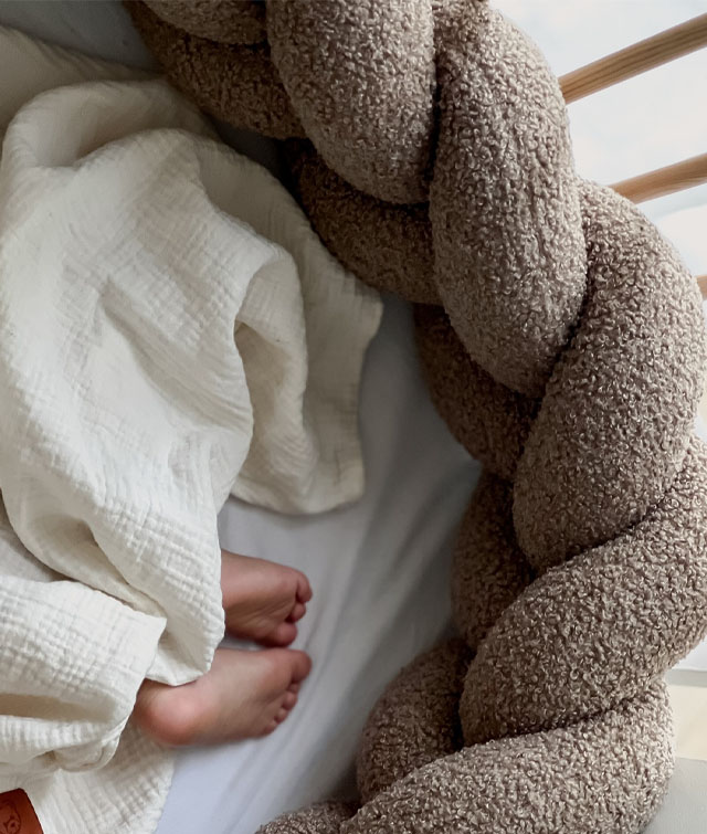 Προστασία & Ασφάλεια – Η πλεξούδα προστατεύει το παιδί από χτυπήματα στα κάγκελα της κούνιας και αποτρέπει το σφηνάρισμα χεριών ή ποδιών.