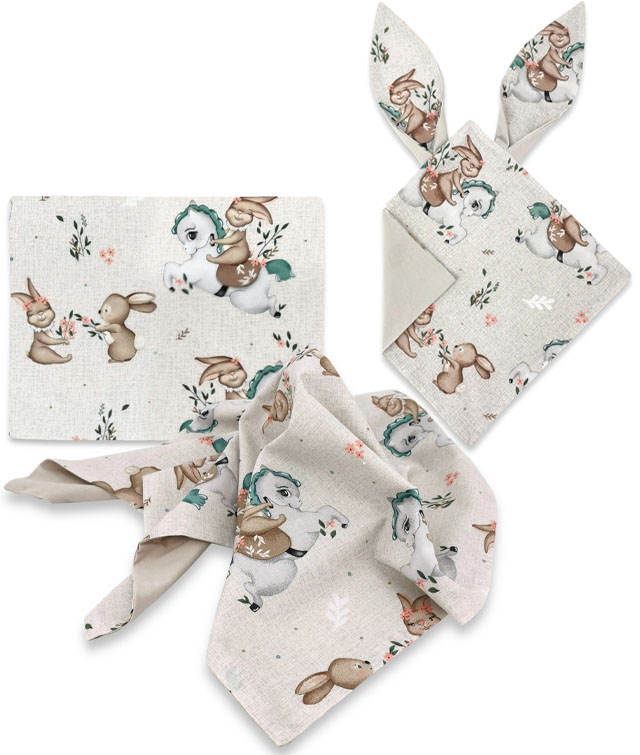 Βρεφικό σετ ιδανικό για λίκνο, καλαθούνα, πορτ μπεμπέ, φωλιά. Το σετ περιλαμβάνει: μαξιλαράκι με αφαιρούμενη μαξιλαροθήκη 35×30εκ. (με φερμουάρ), λεπτή κουβερτούλα 65×65εκ. ιδανική για την ανοιξιάτικη-καλοκαιρινή περίοδο και πανάκι παρηγοριάς με αισθητηριακό αυτάκι κριτς-κριτς. Όλα τα προϊόντα είναι κατασκευασμένα από 100% βαμβάκι – μία πλευτά μονόχρωμο απαλό ζέρσεϋ και την άλλη ένα όμορφο σχέδιο. Ασφαλές για μωρά από την πρώτη ημέρα της ζωής τους.