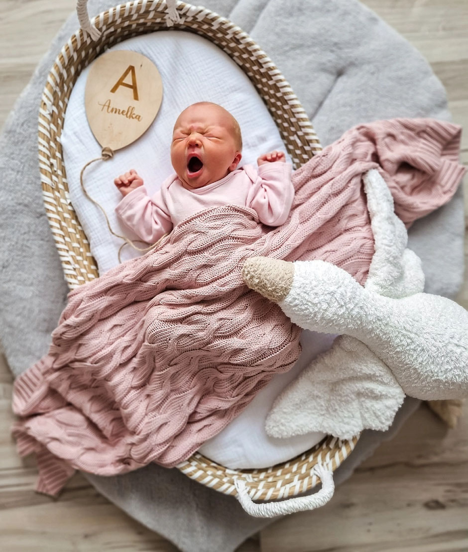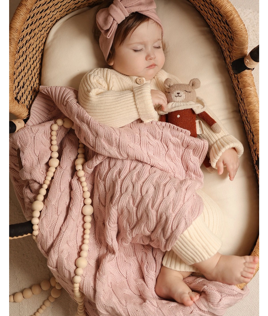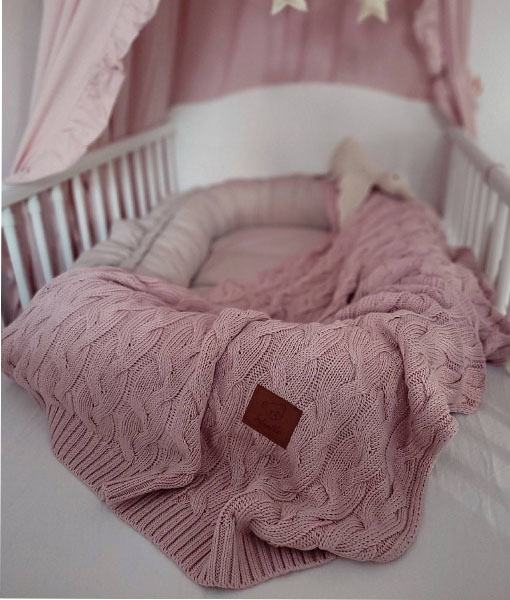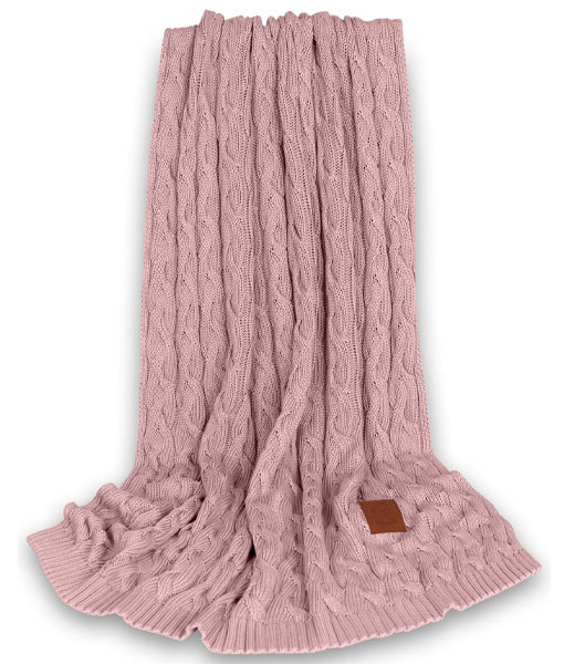 Πλεκτή κουβέρτα από μπαμπού ροζ